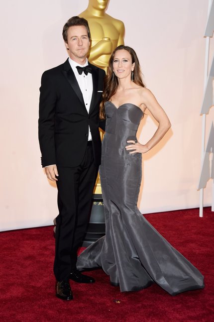 Imágenes como la de Felicity Jones, quitándose un paluego de los dientes a dedazo limpio, se lo ponían muy fácil a las malas lenguas. Una pena, porque el Alexander McQueen de la actriz británica era una verdadera preciosidad, tal y como puede testimoniar nuestro blog La Dolce Vita. Tanto, al menos, como el vestido rojo rubí de Rosamund Pike, el modelo (equivalente hollywoodiense al “arreglada, pero informal”) con el que se presentó Patricia Arquette, favoritísima en la categoría de Actriz Secundaria, y el Calvin Klein cuajado de perlas con el que Lupita Nyongo’o demostró una vez más que la elegancia y ella son una misma cosa. Eddie Redmayne, también nominado por La teoría del todo, era aclamado minuto a minuto como modelo de apostura masculina, mientras que Michael Keaton parecía bajo los efectos de una suma de copazos tras la cual cualquiera vería a Birdman caminando por Los Ángeles y Cate Blanchett combinaba un vestido negro con un collar Tiffany’sde forma matemáticamente perfecta. Dentro ya de lo jocoso, circularon tanto una foto enternecedora de Benedict Cumberbatch y Eddie Redmayne cuando ambos eran unos pipiolos, y un hoax según el cual Sonia Monroy se habría estado paseando por la alfombra roja vestida de bandera española. Un bulo, esto último, puesto que las fotos eran del día anterior.